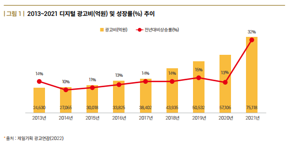 - IT 산업이 계속해서 성장하면서 디지털 광고비 성장률도 큰 폭으로 증가하고 있음