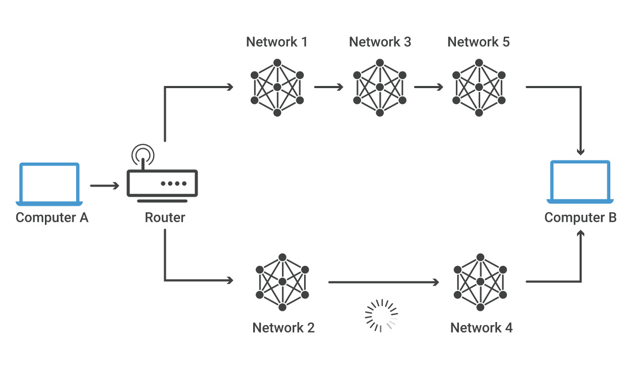 - 데이터 패킷이 사무실 네트워크 라우터로 이동됨