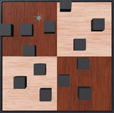 E-puck로봇에 있는 근접센서 중 ps0, ps1, ps2, ps5, ps6, ps7을 사용한다. 훈련 환경은 충돌 회피를 학습할 수 있는 공간, 목적지 도착을 학습할 수 있는 공간, Local Minima(LM)를 극복할 수 있는 공간으로 나뉜다. 각 공간에서 무작위로 출발을 하게 되며, 목적지에 도착하거나 충돌하면 다시 출발 위치를 부여 받게 된다.
