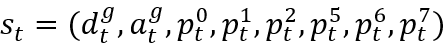 State 는 총 3개의 프레임으로 구성되며 각각은 식 (2)와 같이 목적지와의 상대 거리 , 로봇과 목적지와의 상대 헤딩 각도 , 6개의 근접 센서 값 로 이루어져 있다